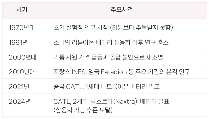 - 💰 저비용: 리튬 대비 저렴하고 공급 안정성 뛰어남