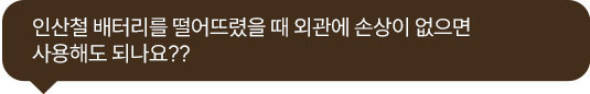 A6: 외관에 이상이 없더라도 내부 손상이 있을 수 있으므로 주의가 필요합니다. 배터리 상태를 주기적으로 점검하고, 이상이 없다고 판단되면 사용하되, 이후에도 발열이나 성능 저하가 없는지 주의 깊게 모니터링하는 것이 좋습니다.