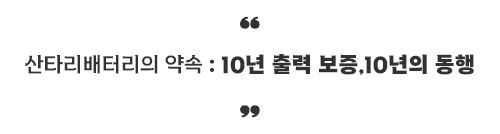저희 산타리배터리는 단순히 제품을 판매하는 것을 넘어, 고객 여러분의 '10년 에너지 파트너'가 되겠다고 약속드립니다.