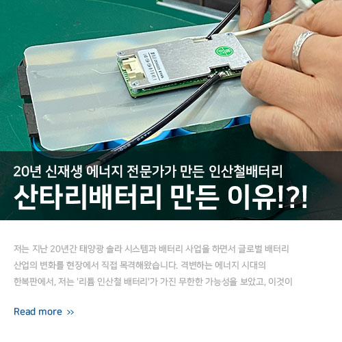 | [무료 증정]인산철 배터리 "초보자"에겐 입문가이드, 실무자에게 실전 지침서가 되는 THIS IS 산타리배터리 책자 무료 증정 (0) | 2026.03.06 |