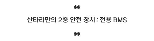 더 자세한 안전 인증 결과와 제품 사양은 산타리배터리 공식 홈페이지(www.santalibattery.com)에서 확인하실 수 있습니다.